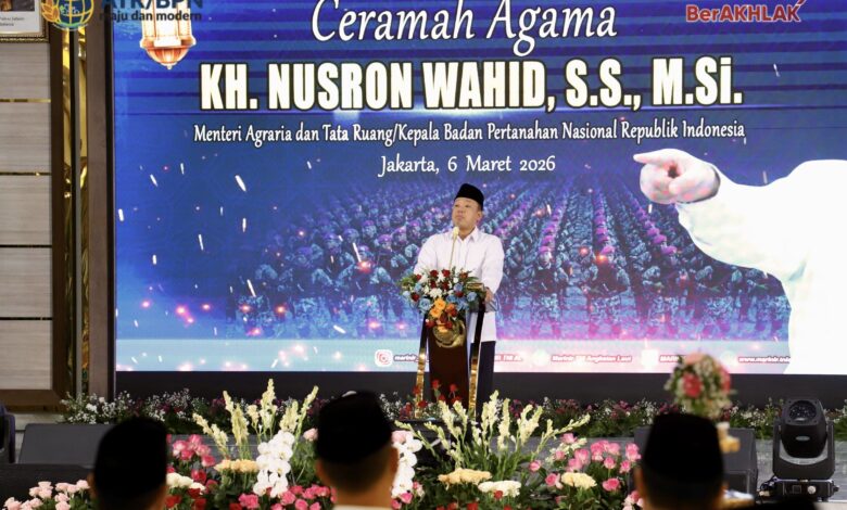 Jakarta – Menteri Agraria dan Tata Ruang/Kepala Badan Pertanahan Nasional (ATR/BPN), Nusron Wahid, menyampaikan ceramah agama pada acara Peringatan Nuzulul Quran dan Buka Puasa Bersama Prajurit Korps Marinir Tentara Nasional Indonesia Angkatan Laut (TNI AL) Tahun 2026, di Gedung Aminullah Ibrahim Kesatrian Marinir Hartono Cilandak, Jakarta, Jumat (06/03/2026). Dalam momentum peringatan turunnya wahyu pertama berupa Al-Qur’an kepada Nabi Muhammad SAW melalui Malaikat Jibril di Gua Hiro ini, Menteri Nusron mengingatkan bahwa turunnya Al-Qur’an adalah rahmat dan nikmat yang paling agung bagi umat muslim.